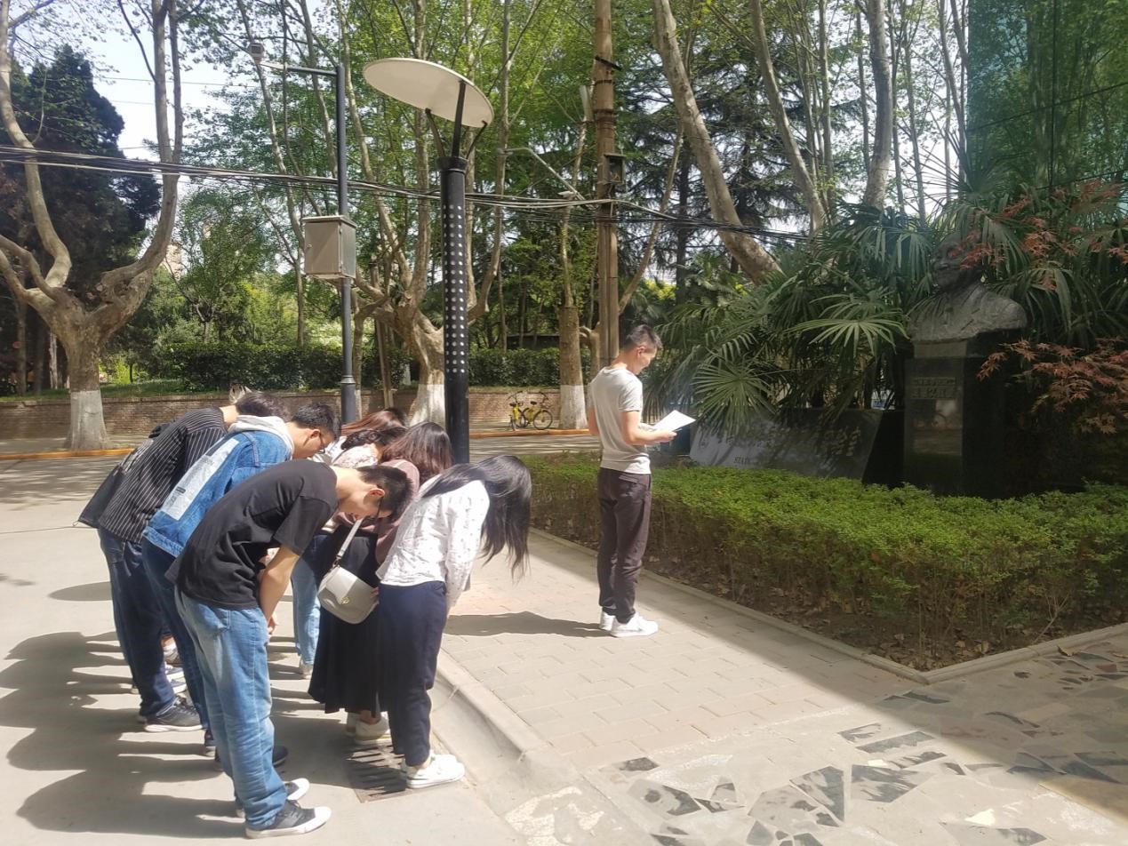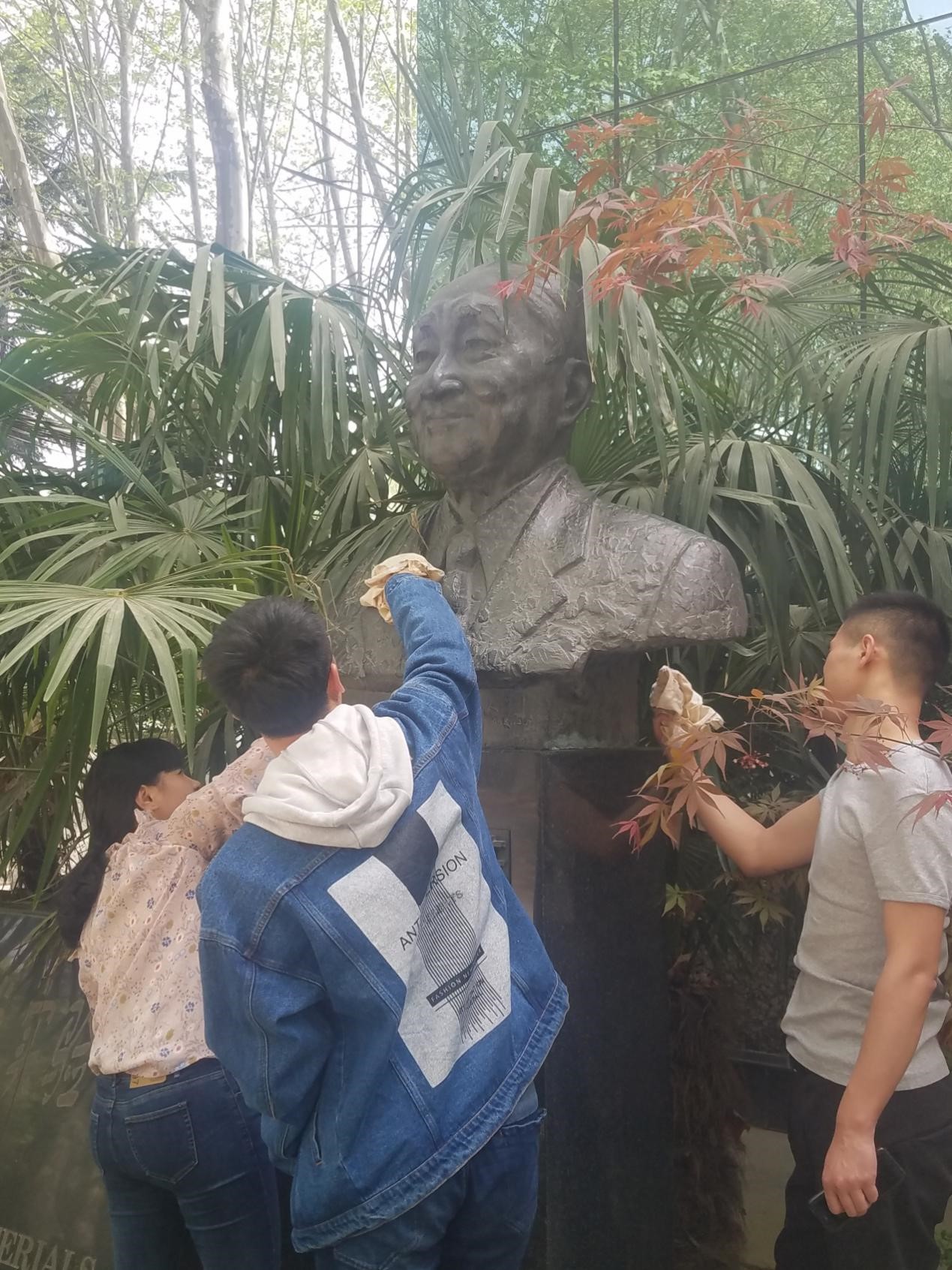 支部成员怀着对先生崇敬的心情擦拭周惠久先生铜像,缅怀先辈,“一年前,强度楼雕像前,初识周院士;今天,还是这个地方,缅怀周院士。周院士的西迁精神永垂不朽,周院士为西部发展乃至新中国的发展贡献自己的力量,今天作为西迁精神的传人,我学习周院士,为自己,为中国之崛起,向西方,向远方。”支部成员表达着对周老先生崇高的敬意,也明确着作为青年党员、新时代材料人肩上的使命,“先生对待学术的坚持不懈,面对困难时的不放弃,是最为值得我学习的,努力将自己也变成一个像材料那样强韧综合那样优秀的人。”