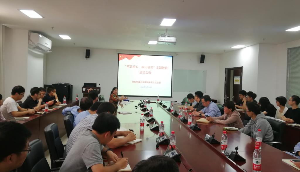 9月26日下午,材料学院材料物理与化学师生联合党支部在学院第三会议室召开了“不忘初心、牢记使命”主题教育启动支部扩大会议,党支部书记宋月贤主持动员大会,材料物理与化学系全体老师和材料物理与化学师生联合党支部全体党员参加。
