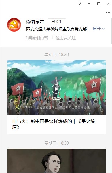 微纳师生联合党支部所属微信公众号“微纳党宣”自开设以来,以立足微纳中心,面向材料学院为宗旨,着力打造属于全体微纳人的宣传高地。2022年上半年 “微纳党宣”推送支部及学院新闻稿10篇,党史学习视频11条,入党流程相关知识5篇,支部活动新闻稿8篇,总计推送36条内容,累计阅读量近800次,单条内容最高阅读量近200次。