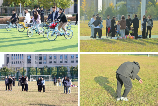 10月27日下午支部成员联合S4018,S4023,S4024,S4028团支部,在涵英楼后操场开展“谱写青春韵律,奏响运动强音”主题趣味运动会。本次运动会共设“懒惰”自行车、两人三足、乒乓球接力等项目。支部团员们在一项项游戏中感受运动带来的乐趣,体会合作产生的默契,操场上洋溢着青春与活力。