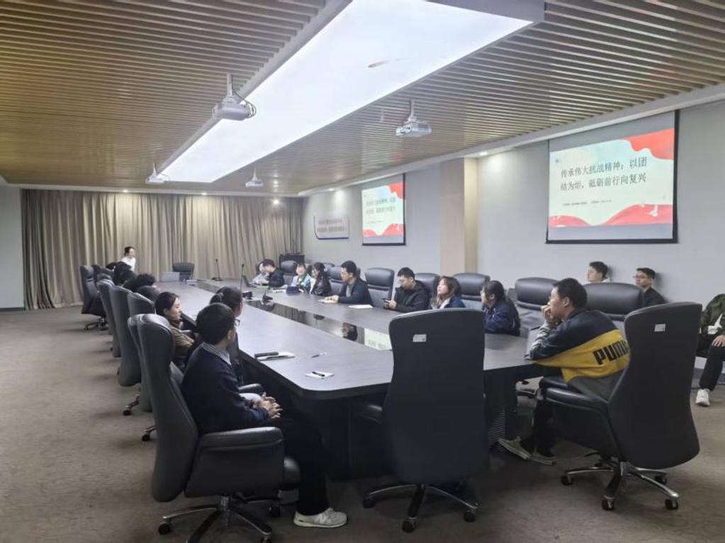 为深入学习贯彻习近平新时代中国特色社会主义思想,将伟大抗战精神的时代力量与团结合作砥砺前行的合作意识紧密结合,材料学院创新港第二党支部于10月29日在创新港3-2011成功举办“传承伟大抗战精神:“以团结为炬,砥砺前行向复兴”主题党日活动。活动以自我介绍、专题学习、分享交流为三大核心环节,引导支部党员在回望历史、感悟当下、展望未来中,深刻把握新时代人类命运共同体的核心要义,凝聚起“以团结为炬,砥砺前行向复兴”的青春力量。