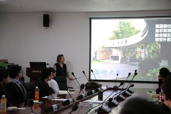 胡老师精神矍铄,丝毫看不出已达耄耋之龄,当同学们提议让胡老师使用话筒时,她断然拒绝,她说自己嗓门足够亮,即使上一二百人的大课也不需要话筒。我们了解到胡老师原来在1956年毕业于交通大学,随后随校西迁,之后一直在学校工作了六十年之久。纵然年过八十,她也处于退而不休的工作状态,一直努力为交大历史的传承做贡献。