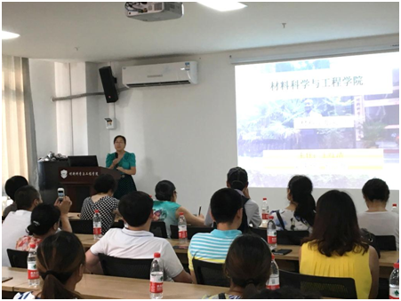 材料学系副主任孙巧艳首先对材料学系的两个专业方向(金属材料工程、无机非金属材料)以及四个研究室(材料强度研究室、微纳材料研究室、表面工程研究室、新材料研究室)的研究方向及应用领域进行了介绍,并介绍了材料学系的研究成果、师资力量、毕业生去向等,最后指出要努力培养“贯穿型创新拔尖人才”。