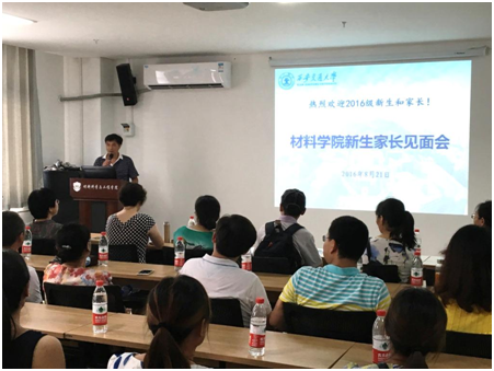 材料学院新生家长见面会于2016年8月21日在新材料大楼第一会议室召开。材料学院分党委书记潘希德、分党委副书记刘黎、材料学系副主任孙巧艳、材料加工系副主任皇志富、材料物理化学系副主任刘峰出席了此次家长见面会。参加会议的还有新生班主任韩卫忠、王章洁、邓俊凯、薛德祯及崇实书院院务主任许春秀、辅导员张伟耀和来自全国各地的新生家长。会议由材料学院研究生辅导员吴文媛老师主持。