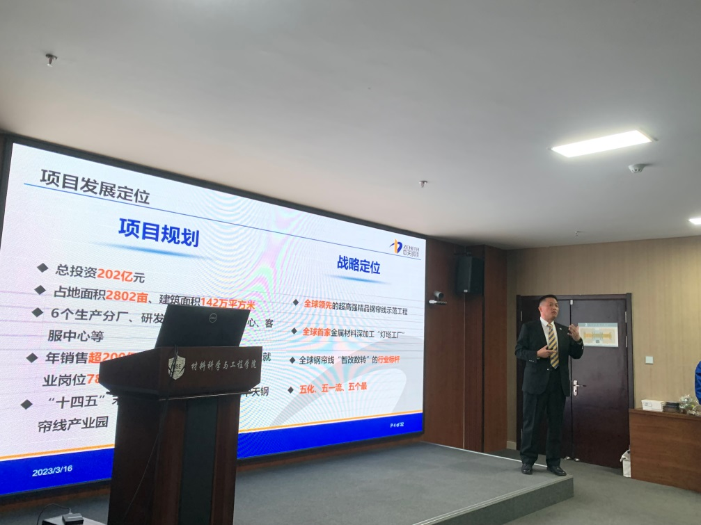 之后,盛荣生校友从轮胎中碳含量对强度的影响的角度入手,介绍了中天钢铁集团(淮安)新材料公司的项目规划、先进性以及研发人员及投入情况,同时对产学研合作及专利成果产业化情况进行了分享。从产品和技术的竞争优势和钢帘线等产品的情况,介绍了中天镇江工厂的基本情况。