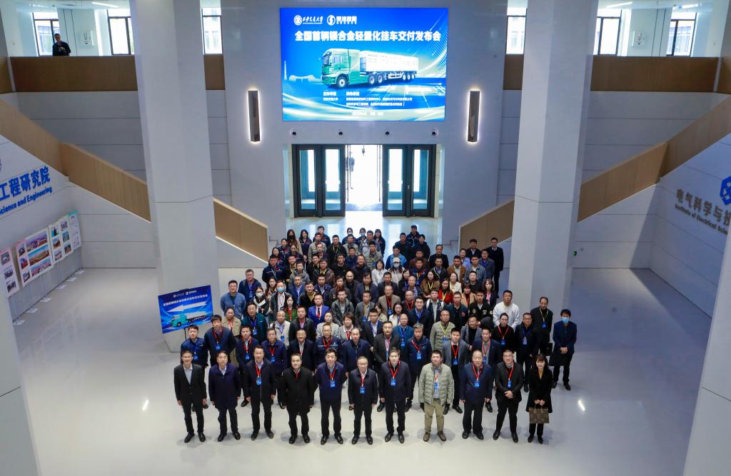 2023年4月23日,西安交通大学与陕西汽车控股集团有限公司在中国西部科技创新港隆重举办“全国首辆镁合金轻量化挂车交付发布会”。德创未来汽车科技有限公司执行董事王钊、榆林市人大主任王国忠、陕西省工信厅副厅长张康宁、西安交通大学副校长洪军、榆林市府谷县县委书记田小宁等出席发布会并致辞。参加发布会的还有来自陕西、山西、山东、四川、重庆、香港等6个省区、30余家企业的100余位嘉宾和20余家媒体。会议由西安交通大学校长助理/材料学院院长单智伟主持。