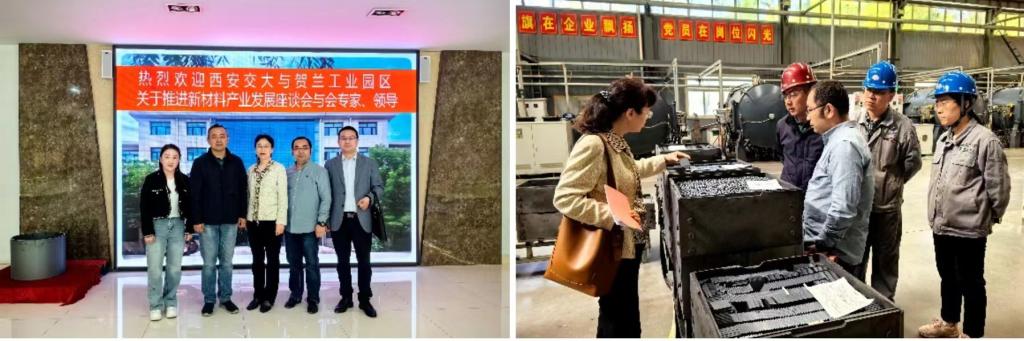 4月24日上午,高宏书记和王红洁副院长分别带队前往银川市苏银产业园、贺兰工业园和经开区管委会,参观园区企业并展开座谈,在人才交流、人才培养、创新平台与科技成果转化等方面进行了深入交流。齐永良老师和李磊老师介绍了其科技成果转化项目的情况,期望在苏银产业园完成成果转化落地。王红洁副院长和刘荣臻老师深入贺兰工业园区宁夏北方高科、宁夏北瓷等新材料企业,就联合共建研发平台、为企业专门打造同等学力在职研究生班,提升企业员工专业技能,促进企业研发能力提升等事宜进行了合作洽谈。李烨飞老师前往经开区共享铸钢有限公司了解企业实际生产情况,就建立长期技术合作机制、联合高校团队解决企业生产的技术难题等方面开展项目沟通。