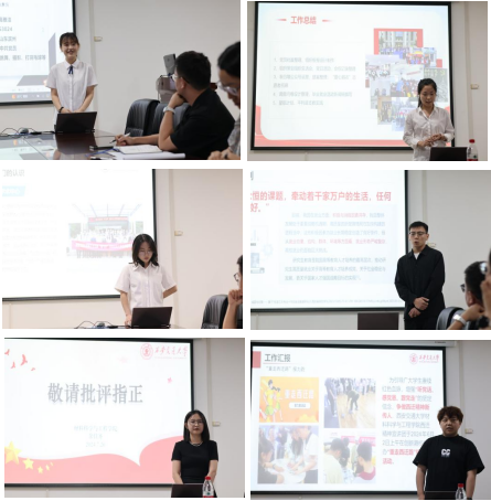 随后,材料学院团委韩静怡从夯实基层团建、强化青年思想引领、搭建实践锻炼平台及关注学生发展需求四个方面汇报了团委近一年的主要工作内容;研究生会曹洋从思想引领、学术育人、交流建设等方面汇报了研究生会在过去一学年所取得的成绩;党建工作组刘碧荷从组织建设、宣传工作、党建活动三方面展示了党建工作组在坚持党建引领、筑牢基层党建阵地、夯实基层战斗堡垒等方面的工作;西迁精神宣讲团吴东升分享了材料学院西迁精神宣讲团通过举办主题微宣讲、三下乡支教等活动,致力于弘扬西迁精神,强化思想建设;“文化+”工厂姚超回顾了过去一年在校园文化建设、学生活动、团队建设等方面的亮点工作,以服务师生为宗旨,不断加强校园文明建设。同时,各学生组织也反思了以往工作中的不足,并对后续的工作提出建议和展望。