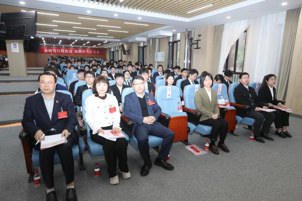 材料学院第五次研究生代表大会筹备委员会秘书长、研究生管理辅助人员李明华表达了对材料学院研究生会工作的高度肯定,同时他还指出,作为学生骨干要见贤思齐、取长补短,不可骄傲自满、盲目自大,对同学们提出了两点希望,一是希望各位同学能更加明确未来规划,通过自身努力实现奋斗目标;二是希望同学们珍惜当下时光,利用学院宝贵的平台和资源,让青春在全面建设社会主义现代化国家的火热实践中绽放绚烂之花。