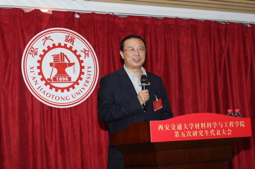 材料学院院长丁向东在讲话中表示,到2035年,我国将进入创新型国家前列,建成科技强国,值此之际,同学们将面临更多的责任、挑战以及机遇,希望同学们在数字革命和新能源革命等历史机遇中充分发挥聪明才智,为祖国建设贡献青春力量;同时他还强调,材料学院研究生会要继续发挥政治引领的作用,弘扬西迁精神,牢记党和国家赋予的使命任务,要担起作为沟通桥梁的责任,对研究生会今后的工作提出三点期望:一是做好学生与老师和学院的沟通桥梁,二是做好学生与企业和研究所等单位的沟通桥梁,三是做好材料学院与兄弟院校的桥梁,团结带领广大研究生积极投身实践,锐意开拓进取,勇于自我革命,在全面推进中华民族伟大复兴的历史进程中挺膺担当、团结奋斗。