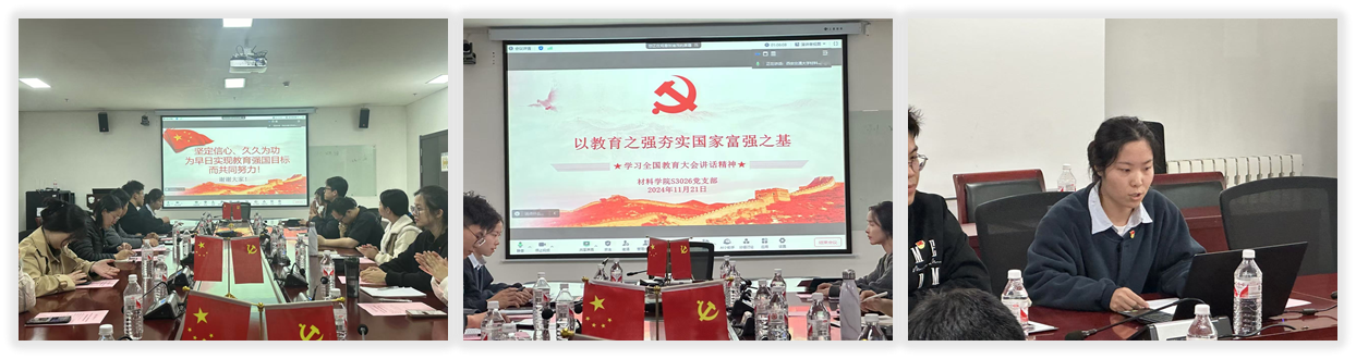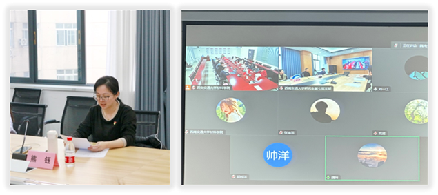 为深入贯彻落实习近平总书记关于教育的重要论述和全国教育大会精神,进一步凝聚思想共识、强化使命担当,推进高校学生支部党建和科研工作扎实有效的结合。11月21日,西安交通大学材料学院硕3020、3025、3026党支部与西南交通大学材料学院研究生第七党支部携手开展“通心同行——筑梦未来”的主题党日活动。主题党日深入学习了习近平总书记在教育大会上的重要讲话,并进行了支部结对共建等活动的开展。大家畅所欲言,受益匪浅,对习近平总书记的重要讲话以及党建科研等有了更为深刻的认知,对自己今后进步的方向也有了更为深切的思考。西南交通大学材料学院党委副书记熊钰、青年教师马飞、支部指导老师邓文婷,西安交通大学材料学院党委副书记魏炜、团委副书记宋京恩,各支部全体党员和积极分子代表参加,活动由西南交通大学材料学院第七党支部书记邰浩云主持。