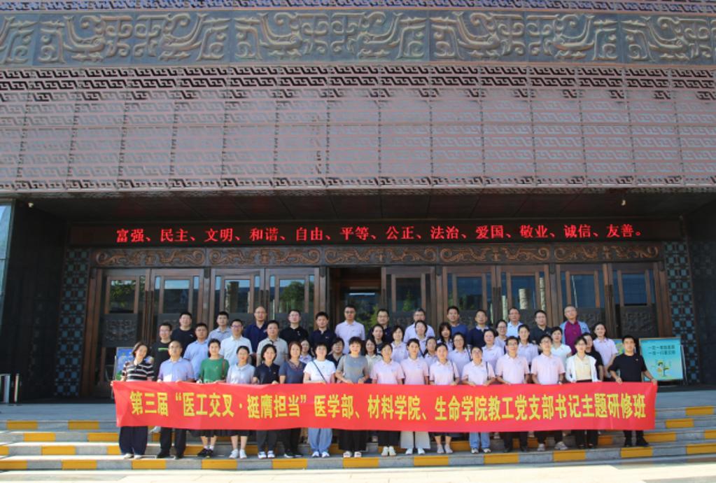 为深入学习贯彻习近平新时代中国特色社会主义思想,加强创新理论武装,提供理工医学科融合交流平台,7月26日至28日,西安交通大学医学部、材料学院、生命学院组织50余名教职工党支部书记及教职工党员赴山东临沂,开展第三届“医工交叉·挺膺担当”教工党支部书记主题研修班。本次活动由材料学院党委书记高宏、生命学院党委书记刘茹及医学部党委副书记陈晨带队。
