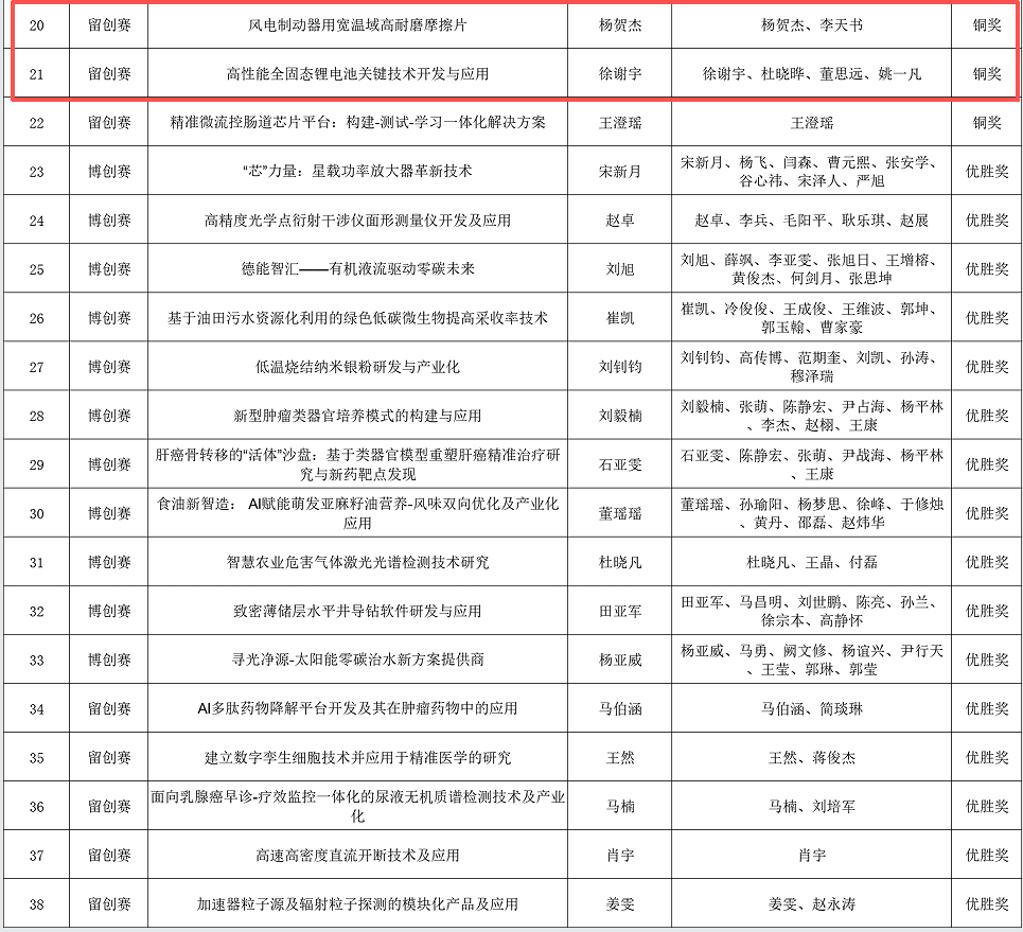 近日,在第四届陕西省博士后创新创业大赛暨留学回国人员创新创业大赛上,西安交大在此次大赛中表现卓越,荣获5金、9银、8铜、16优胜的优异成绩,获奖总数位居全省第一,创下学校历届参赛的最好成绩。材料学院参赛团队凭借科研实力与创新成果脱颖而出,荣获金奖1项、银奖1项、铜奖2项的优异成绩,为学校创下历届最佳参赛纪录贡献了重要力量,展现了材料学科在前沿科技领域的深厚积淀与蓬勃活力。