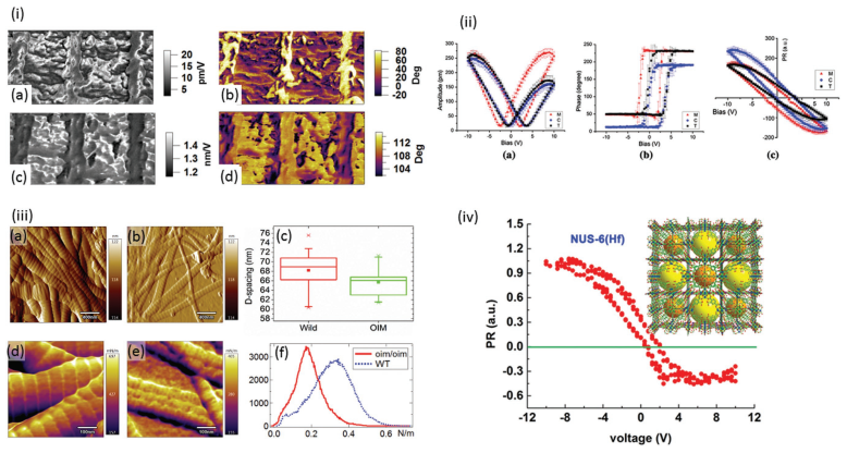 图五则包括了生物材料和大分子材料的压电铁电响应成像。