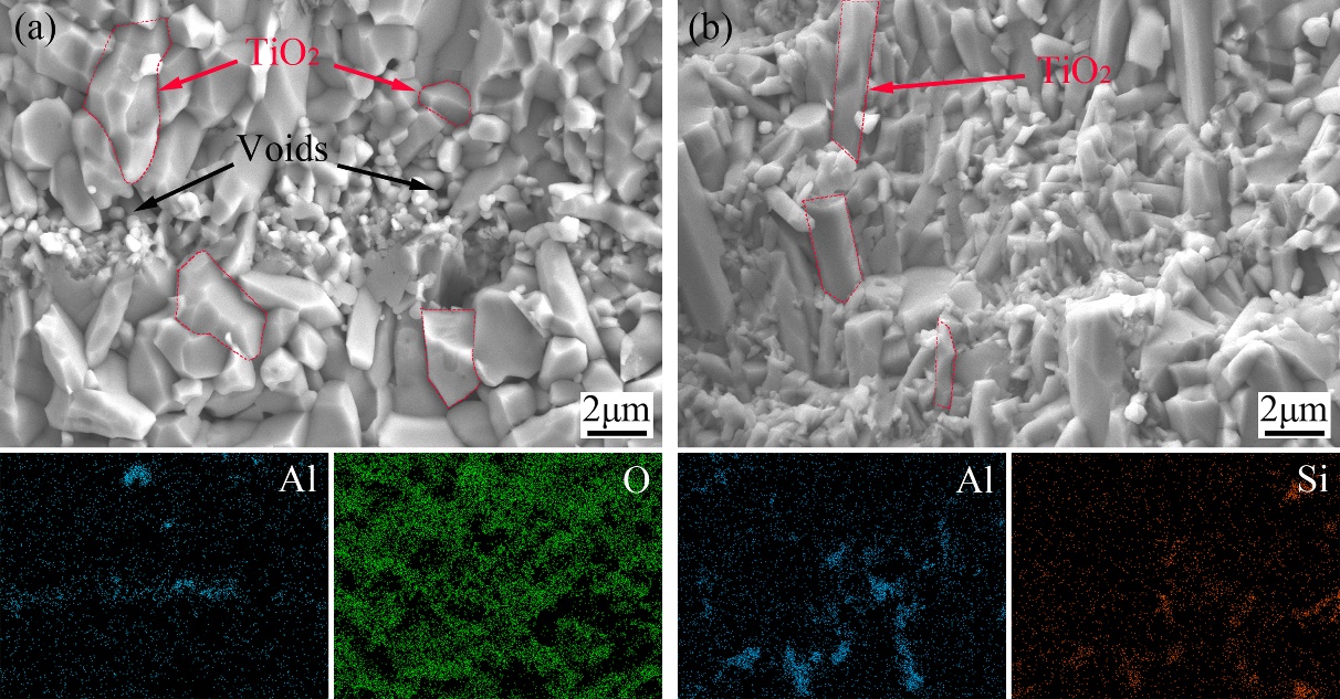 (a) Ti6Al4V合金; (b)钛基复合材料