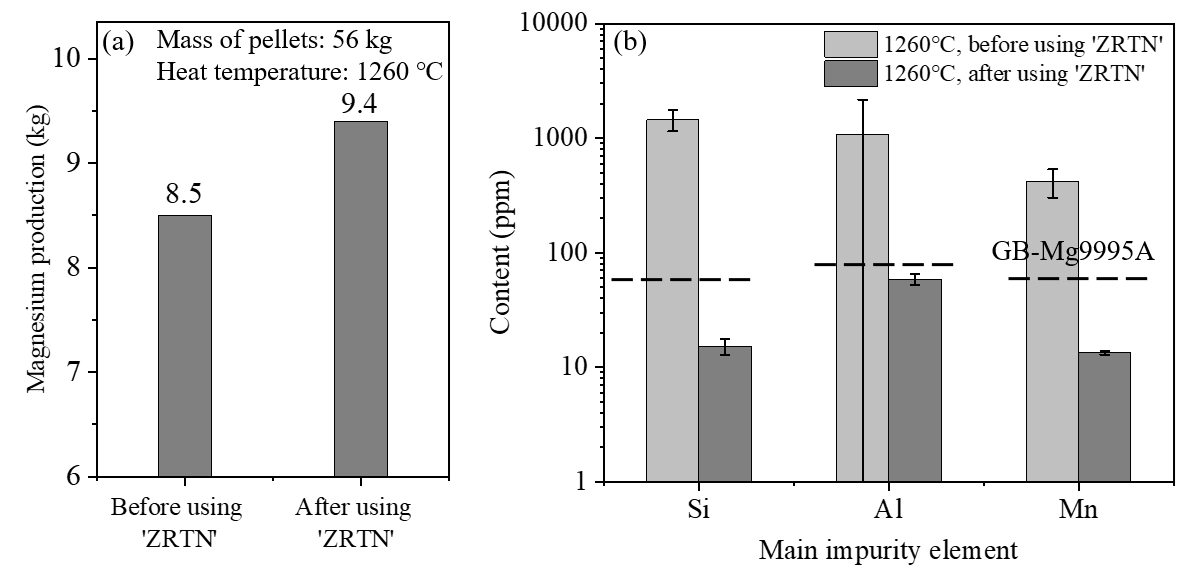 图2 使用“阻热梯凝器”可显著提升粗镁产量,同时还大幅降低粗镁中的主要杂质含量