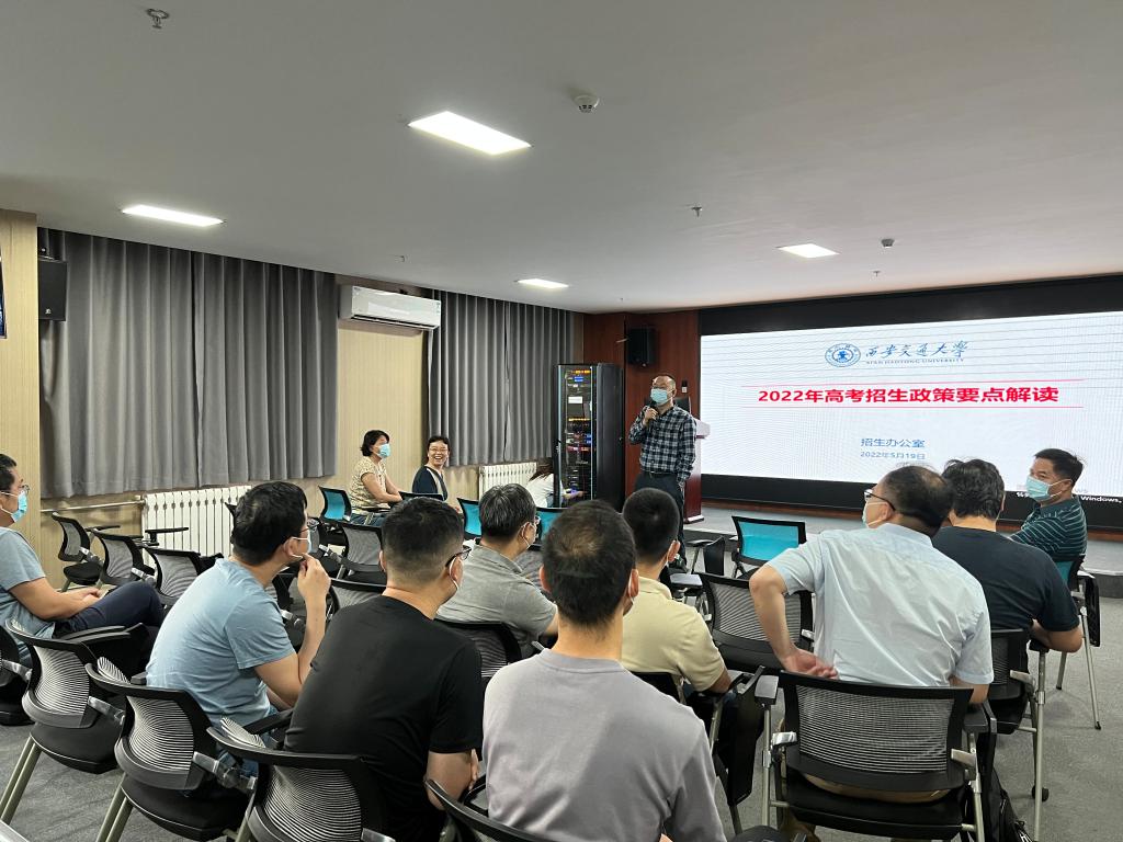 单智伟院长对做好2022年本科招生宣传工作提出四点要求:一是呼之能来,优质生源是学科发展的重要支撑,招生工作事关每位教师,希望大家能发挥“人人都是宣传员”的作用,主动积极加入招生工作团队,贡献自己一份力量;二是来之能战,希望大家发挥交大人务实、严谨的作风,向社会层面展示交大人负责任、有担当的良好形象,要了解交大的校史校情、熟练掌握政策,确保招生宣传的严肃性,帮家长和学生分析利弊,选择合适的专业院校;三是战之能胜,发挥亮剑精神,利用好校友资源,强化联络,通过优秀校友的现身说法和省外校友会的力量,扩大招生影响力,提高招生宣传的深度和广度;四是胜之有道,招生宣传过程中要注意方式方法,把握好尺度分寸,保持大格局,与兄弟院校保持良性竞争。他还强调,要做好个人防护与途中个人安全工作,确保人力、精力的投入,使今年的招生工作迈上新台阶。