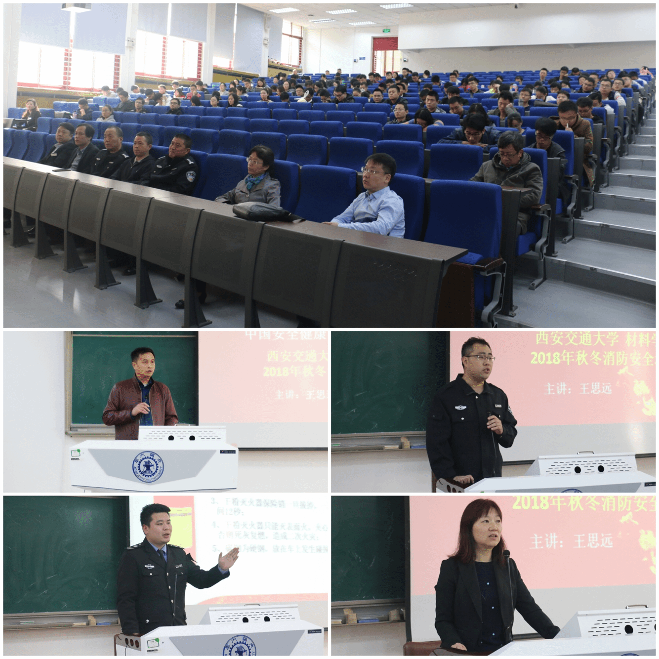 为了增强学生安全意识,落实“平安校园”工作,11月1日下午,材料学院邀请到卫民安消防科技站的王思远教官在1300教室为大家进行秋冬季消防安全培训讲座。西安交大保卫处副处长尤志强、消防科刘豹虎、王红科,实验室与资产管理处李茹,西安交大思源责任公司总经理张志国、总经理助理余庆,材料学院党委书记潘希德、副院长王红洁、副书记魏炜,西安交大分析测试共享中心老师及研究生参加讲座培训。